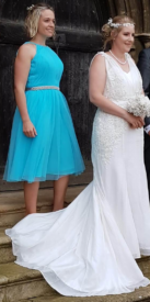 I make all kinds of dresses from wedding dresses and bridesmaid dresses to formal outfits for business wear. I can provide a complete design service or I can work with your pattern and your fabric.